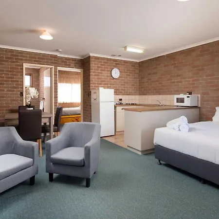 Featuring a patio and a seasonal outdoor swimming pool, Corowa Bindaree Holiday Park lies 2.6 km from Corowa Presbyterian Church. The 3-star motel has a garden along with barbecue grills.