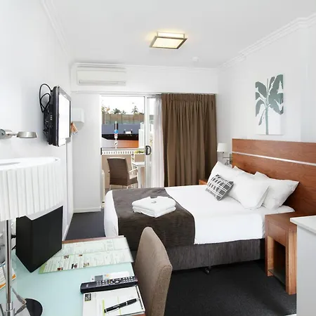 Some of the 95 air-conditioned rooms at this Brisbane property are furnished with a cupboard and a sofa set, and appointed with coffee and tea making facilities. Compact bathrooms also include dryers and a shower cap.