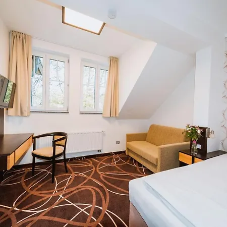 The 3-star hotel is located in Karlovy Vary, next to a river. The property is also 2.4 km from Children's World U Hafika Karlovy Vary Playground in Karlovy Vary.