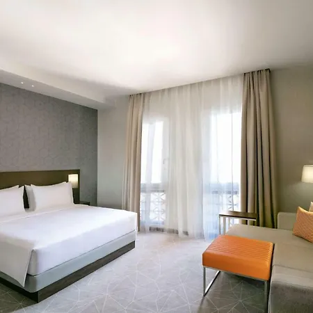 The Hyatt Dubai features a cocktail bar and Market restaurant serving international cuisine.