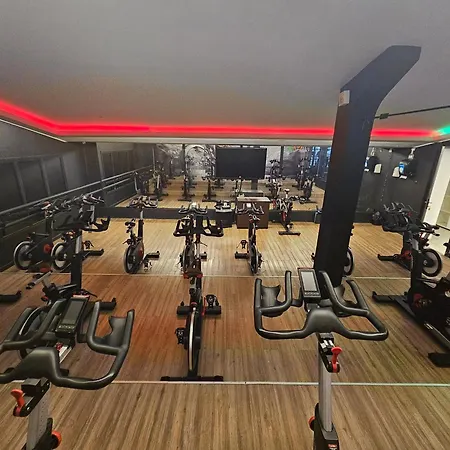 Tem centro de fitness com uma grande variedade de esportes.