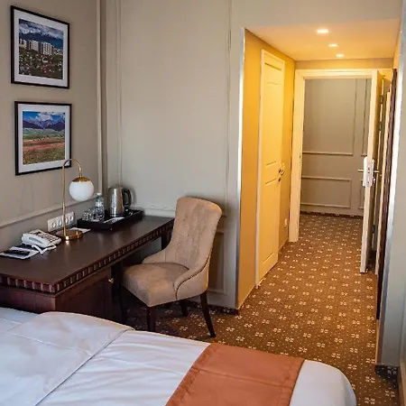 The air-conditioned rooms at this hotel are fitted with a flat-screen TV with cable channels, some of them feature sound-proof windows. Separate bathrooms include nice touches such as dressing gowns and a shower cap. Enjoy views of the city, while staying at this Almaty hotel.