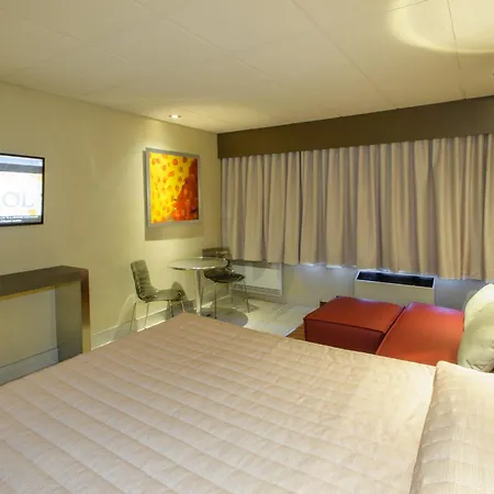 The comfortable hotel invites guests to the lounge bar to relax with a drink. The fast food restaurant Pataterie la Belle Province is a 5-minute walk away.