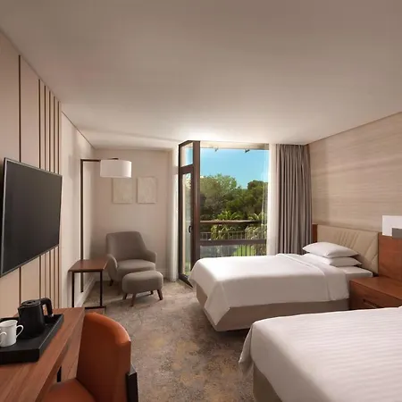 Beach facilities at the Marriott include lounge chairs. The presence of a golf course ensures guests an active stay at the property. The Marriott Lisbon also features conference facilities and a work desk for those arriving on business.