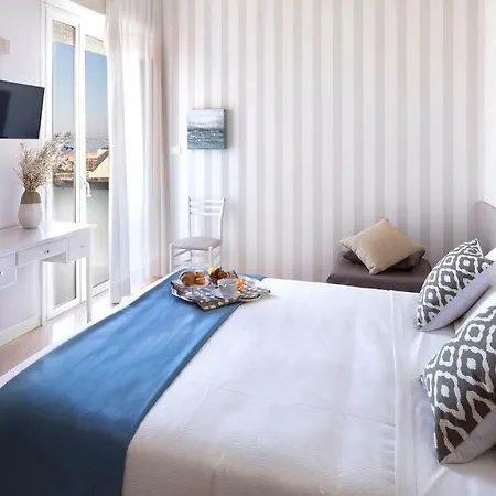 The rooms include an air conditioner, along with such modern comforts as a flat-screen TV with satellite channels. Bathrooms, equipped with a bidet, a separate toilet, and a shower, also feature hairdryers and bath sheets. Guests can enjoy views of the sea from this Riccione hotel.