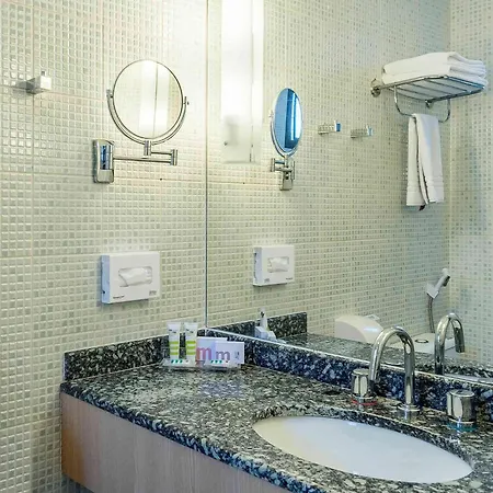 Some of the 168 modern rooms are equipped with blackout drapes, climate control, and soundproof walls, as well as entertainment amenities such as complimentary Wi-Fi and a flat-screen TV with satellite channels. They are outfitted with modern decor. The private bathrooms include a sink along with shower caps.