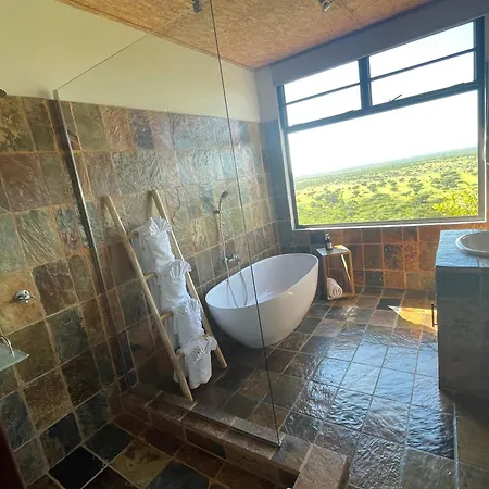 Ein herrlicher Blick auf die Berge ist in der Lodge garantiert. Die Badezimmer in der Villa in Usakos sind mit einer getrennten Toilette und einer Dusche ausgestattet.
