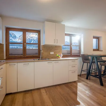 In der Kaiser Chalet stehen Gästen eine Küchenzeile sowie auch ein Essbereich zur Verfügung.