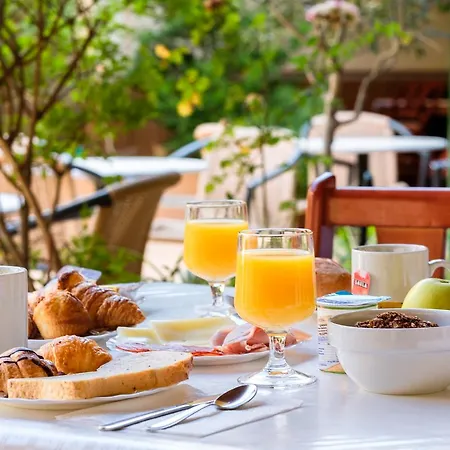 El restaurante sirve comida mediterránea en el hotel Hostal ROM Familiar Rosas. El restaurante Creperie Bretonne Val de Rance con comida francesa, está ubicado justo al lado del hotel.