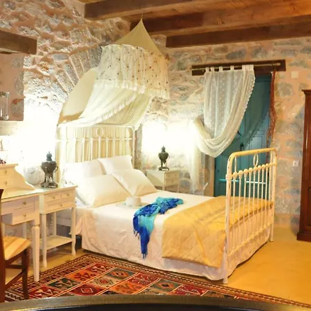 Hotel Ktima Karageorgou à Areópoli offre 16 chambres à environ 4 km des Zervobeakos Handmade Pottery. L'hotel 3 étoiles romantique sert des repas grecs préparés dans le restaurant grec sur place.