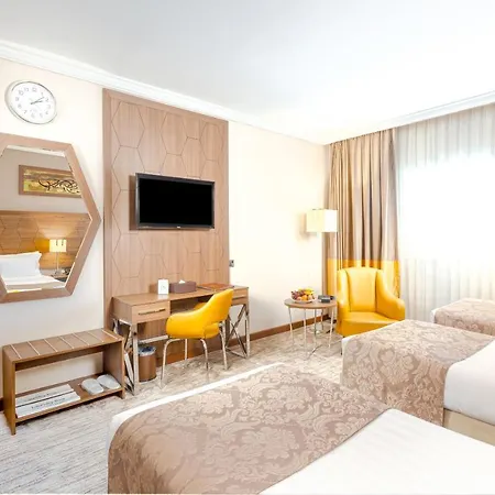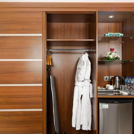 Diwan Rose Hotel features 200 rooms equipped with a flat-screen TV with satellite channels as well as a minibar fridge, tea and coffee making facilities. Private bathrooms include nice touches such as free toiletries. Guests can enjoy views of the city.
