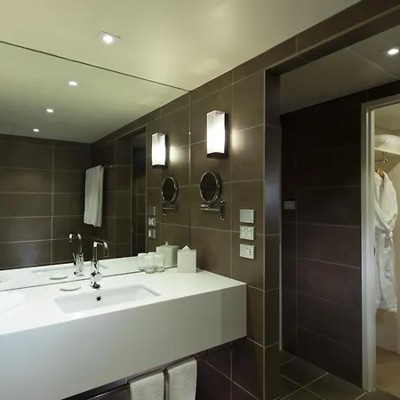 The fashionable rooms at this Adelaide property are furnished with a large work desk, and feature a minibar fridge and tea/coffee making equipment. They have a modern interior. Offering such amenities as a hairdryer and bath sheets, the bathrooms also include a separate toilet and a shower. Guests can enjoy views of the city.