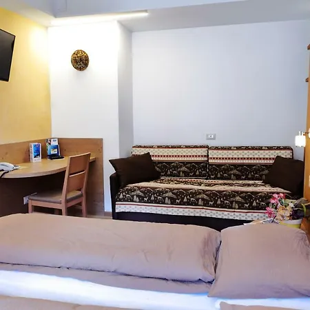 Some of the 16 soundproof rooms at this Pinzolo hotel are furnished with a writing table, and appointed with a mini fridge bar, tea and coffee making facilities. The private bathrooms offer a bidet and a shower, and such comforts as hair dryers and complimentary toiletries. Guests can enjoy views of the garden.