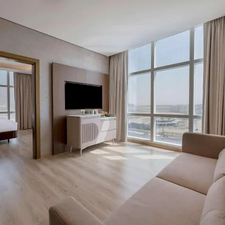 The premium 5-star Movenpick Jumeirah Village Triangle Dubai hotel is located 47 minutes' drive from Al Maktoum International airport and offers a swimming pool as well as a fitness room. Boasting an à la carte restaurant, this Dubai hotel is also about a 15-minute ride from entertainment venues like Dubai Media City Amphitheatre Event Venue.