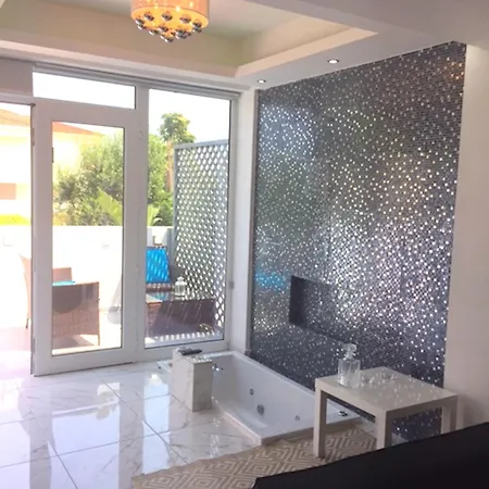 The 7-room Nissi49 Apartments Ayia Napa is located within 25 minutes' walk of Dolfins Luna Park Ayia Napa Harbor and entices guests with an outdoor hot tub, a sauna, and an indoor pool. Set approximately 500 metres from a popular beach, the apartment is also 60 km from Larnaca International airport.