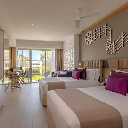 Some of the spacious rooms of the Planet Hollywood Cancun By Royalton, An Autograph Collection All-Inclusive Resort face the pool, and comprise an adjoining terrace and a living room. Guests can make use of a mini-bar, and relax with a TV.