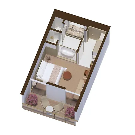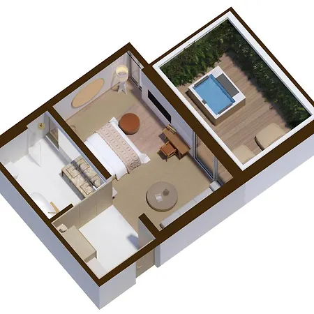 A paved poolside deck is provided in the pool area. A day of pampering can include light therapy, as well as visiting a spa salon.