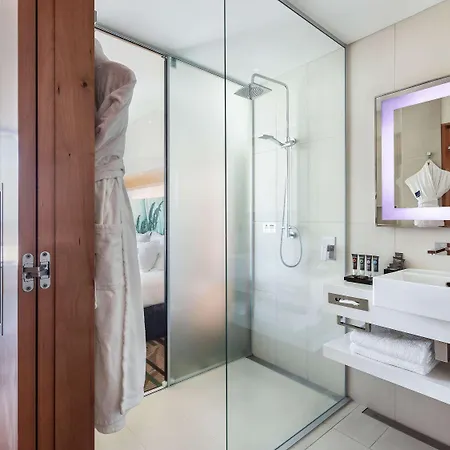 The upscale accommodation features 263 rooms with a flat-screen TV with satellite channels, as well as coffee and tea makers. En-suite bathrooms include nice touches such as dressing gowns and slippers.